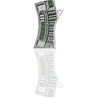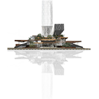 ConferencesHoused in a succession of topographic floor-plates that define a terraced mount of over 15m of altitude, a cinema complex along with retail spaces will be the base of a high-rise development that will include a hotel tower and office buildings.